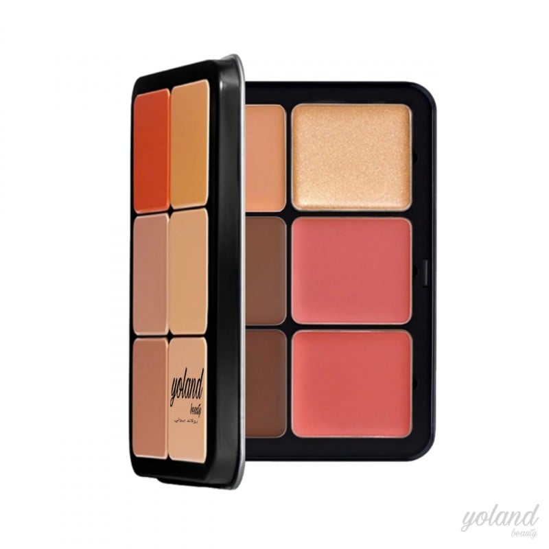 - في هذا الباليت ستجد: 3 كريم أساس ، 4 ظلال من الكونسيلر والمصحح ، 2 أحمر خدود ، 2 كونتور ، و 1 هايلايتر .