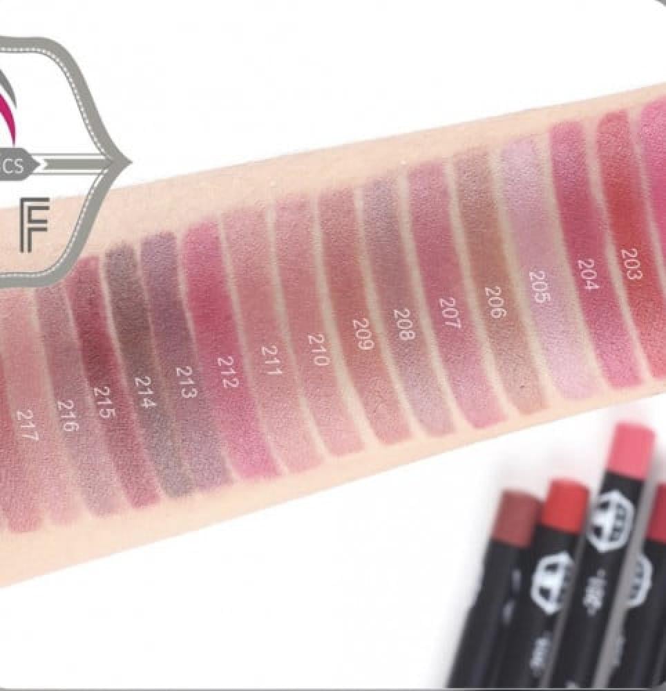 قلم خشبي لملئ الشفاه وتحديدها يوفر لونًا كثيفًا وملمس مطفيا مقاوم للتسرب