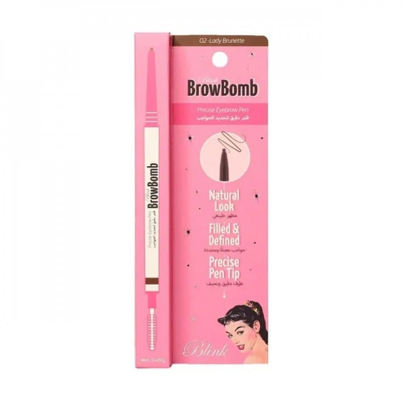 قلم مايكروبليدنج ليدي برنيت 02 من بلينك لتحديد وملء الحواجب بطريقة طبيعية ودقيقة، يمكن استخدامه لتعبئة الفراغات أو تعزيز شكل الحاجبين بشكل عام، يتميز القلم بطرف رفيع يسمح برسم خطوط دقيقة وتحكم عالي في التطبيق، ويتميز بتركيبة طويلة الأمد ومقاومة للماء تساعد في الحفاظ على شكل الحاجبين طوال اليوم.