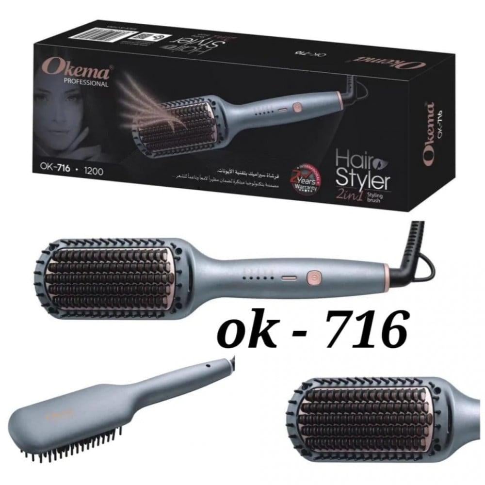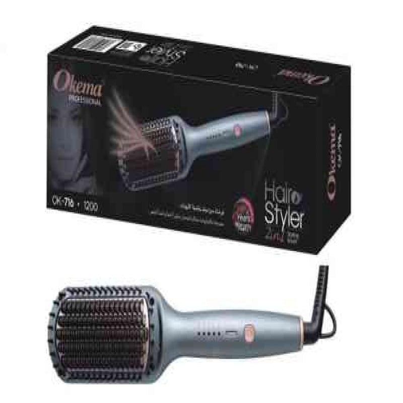 اوكيما فرشاة سيراميك بتقنية الأيونات 2 في 1 هي فرشاة شعر صامتة و حرارية و هو مصمم ليتم استخدامه لتصفيف الشعر دون إحداث ضوضاء. يتميز بوظيفته الحرارية التي تساعد على تنعيم الشعر وفرده. تحتوي الفرشاة على طلاء سيراميك يوزع الحرارة بالتساوي ويقلل من تلف الشعر. كما أن لديها مفتاح تشغيل، الإيقاف و التحكم في درجة الحرارة وسلك دوار بزاوية 360 درجة لسهولة الاستخدام.