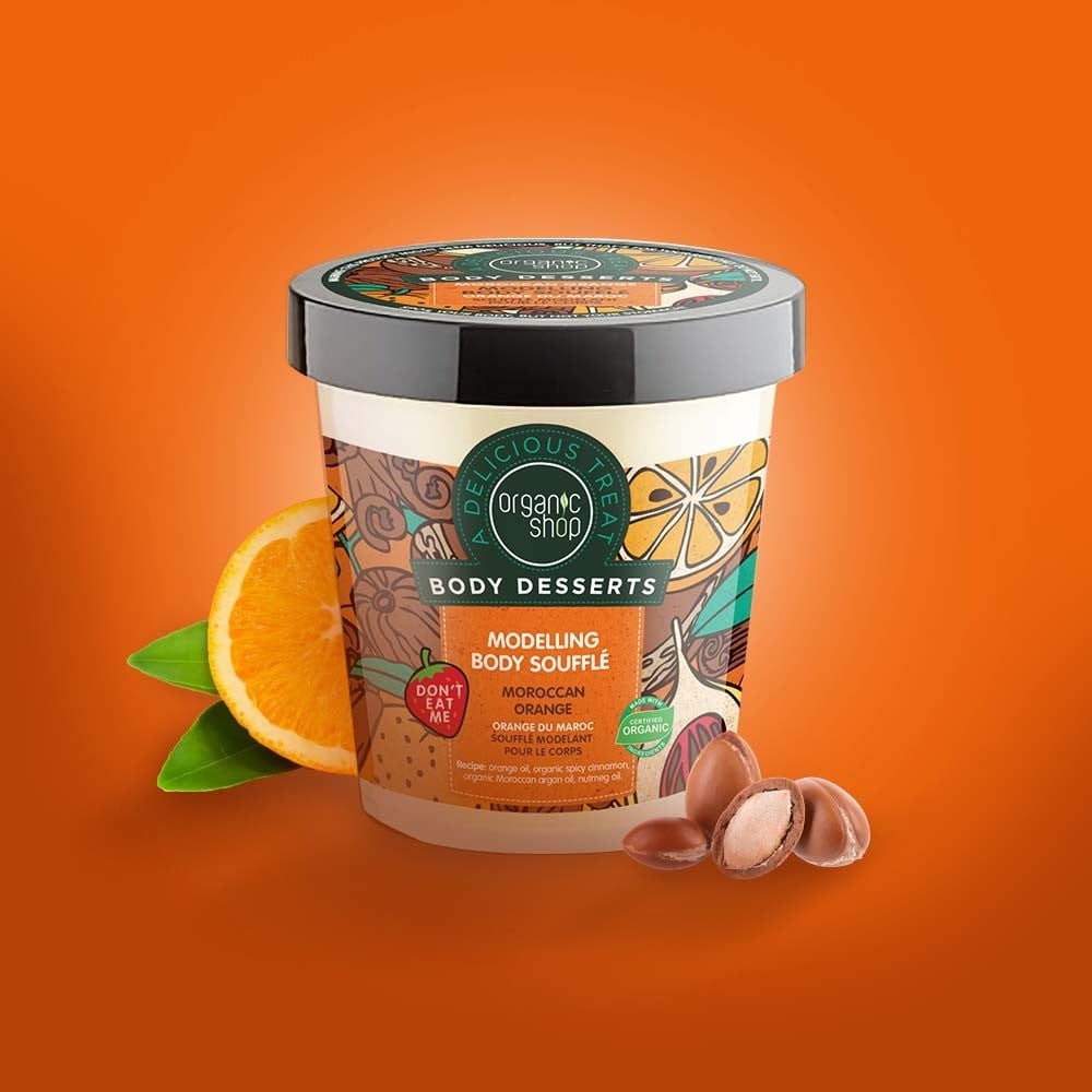 اورجانيك شوب كريم للجسم بالبرتقال هو كريم يعمل على توحيد لون البشرة و يوفر تأثيرًا مرطبًا طويل الأمد اضافة لتحسين مظهر البشرة ومنع ظهور علامات الشيخوخة و هو مفيد لجميع أنواع البشرة