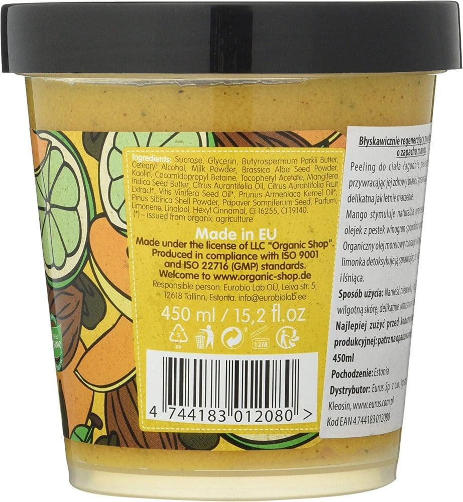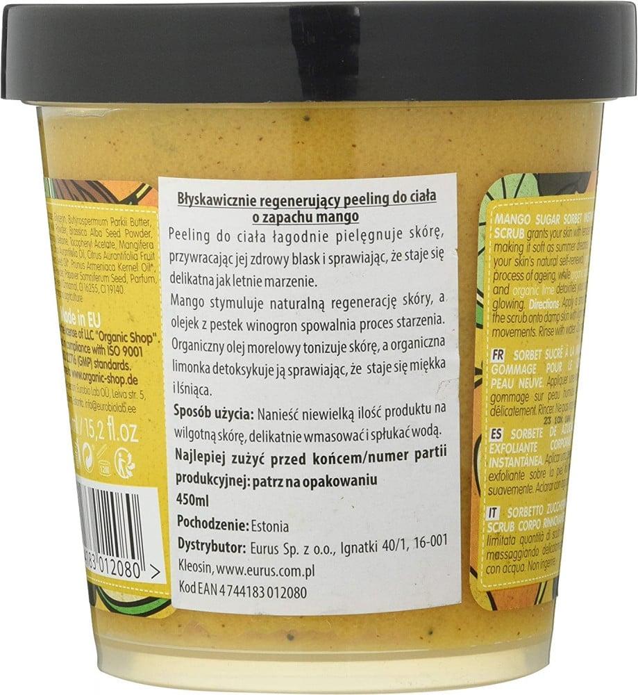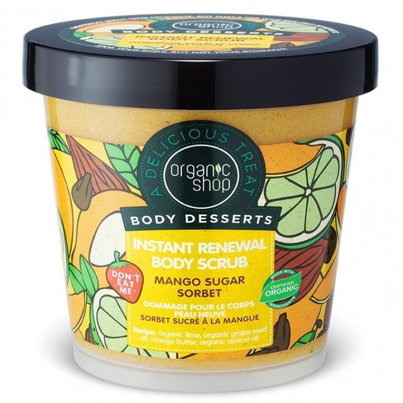 اورجانيك شوب مقشر الجسم بالمانجو هو مقشر من أجل تجديد فوري للبشرة بفضل مكوناتها النشطة التي ستمنح بشرتك عناية لطيفة و نمو صحي و ملمس ناعم جدا لبشرتك