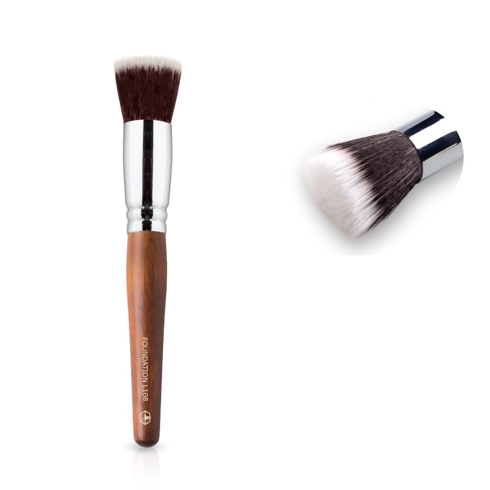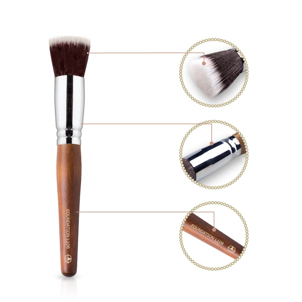 فرشاة دمج كريم الأساس المسطحة للحصول على مظهر "بدون مكياج" الذي تطمحين له، تحتوي على فرشاة بشعيرات ناعمة كالريش من الالياف المزدوجة، تعمل على دمج كريم الأساس السائل او الكريمي للحصول على تغطيه متساوية قابلة للبناء، كما يمكن استخدامها لعمل احمر الخدود الكريمي وخافي العيوب