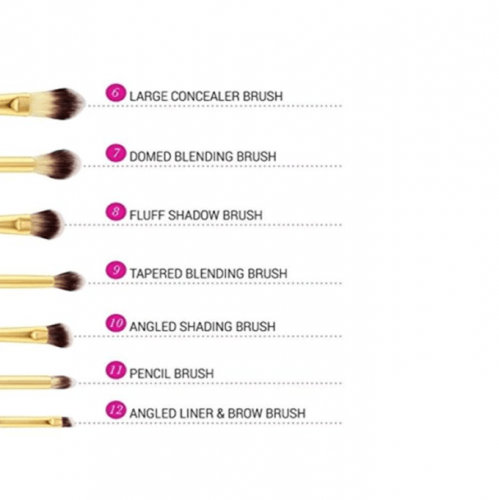 - تحتوي على 12 فرشاة مصممة بدقة عالية باستخدام افضل خامات الشعر المتميز بنعومته ودقته فى الدمج والتوزيع .
