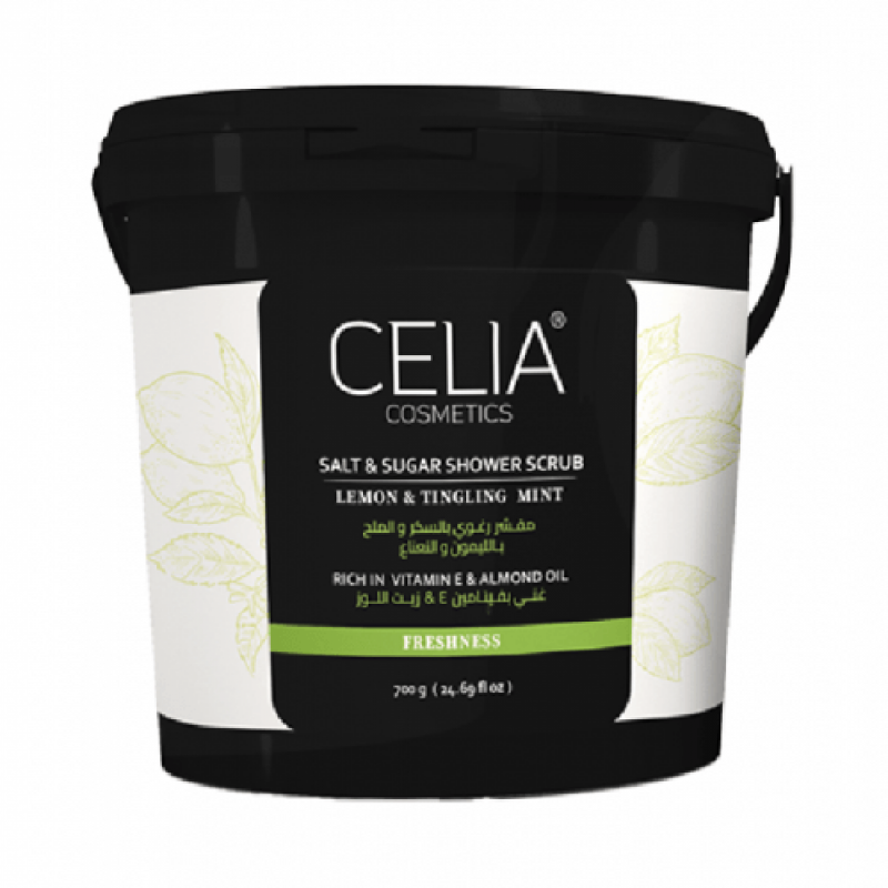 سيليا مقشر رغوي بالسكر والملح بالليمون والنعناع هو مقشر منعش ومنشط للجسم يقشر البشرة بلطف بينما يغذيها بالفيتامينات والزيوت الأساسية. يتكون هذا المقشر من مزيج من ملح البحر والسكر البني لإزالة خلايا الجلد الميتة بلطف وترك البشرة ناعمة وسلسة. توفر رائحة الليمون والنعناع رائحة منعشة ومنشطة تجعلك تشعر بالنشاط والانتعاش.