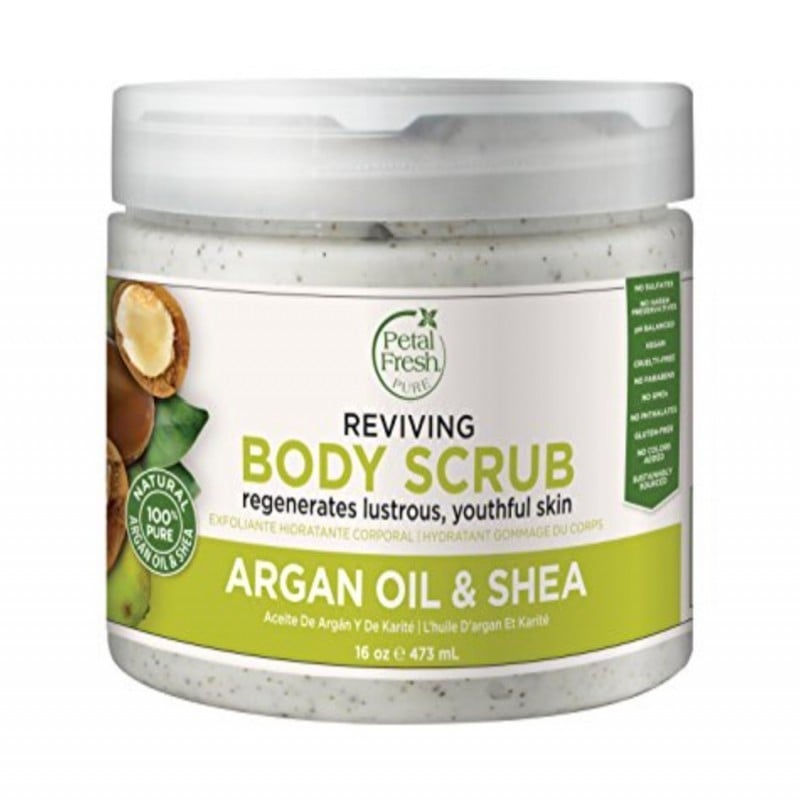 - خذ كمية مناسبة من مقشر الجسم بتلة الأرغان الطازج والشيا على يديك.