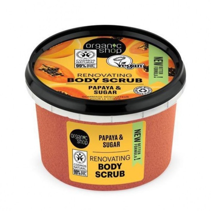 اورجانيك شوب مقشر الجسم بالباباي والسكر هو مقشر لتجديد الجسم بحيث يقشر بشرتك بوفرة ويجددها كما يساعد على نعومة البشرة وجعلها خالية من المشكلات والعيوب.