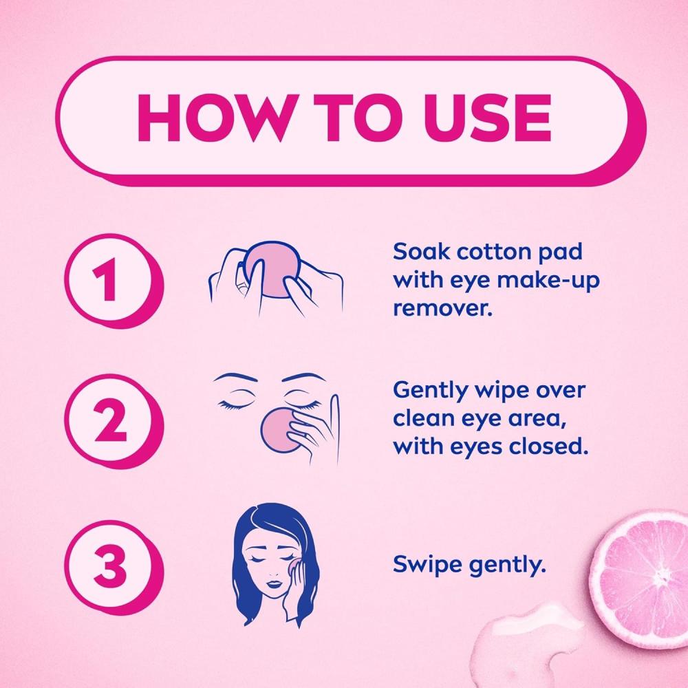 - ضعي كمية مناسبة على قطعة قطن ومرريها بلطف على الجفون والرموش.
