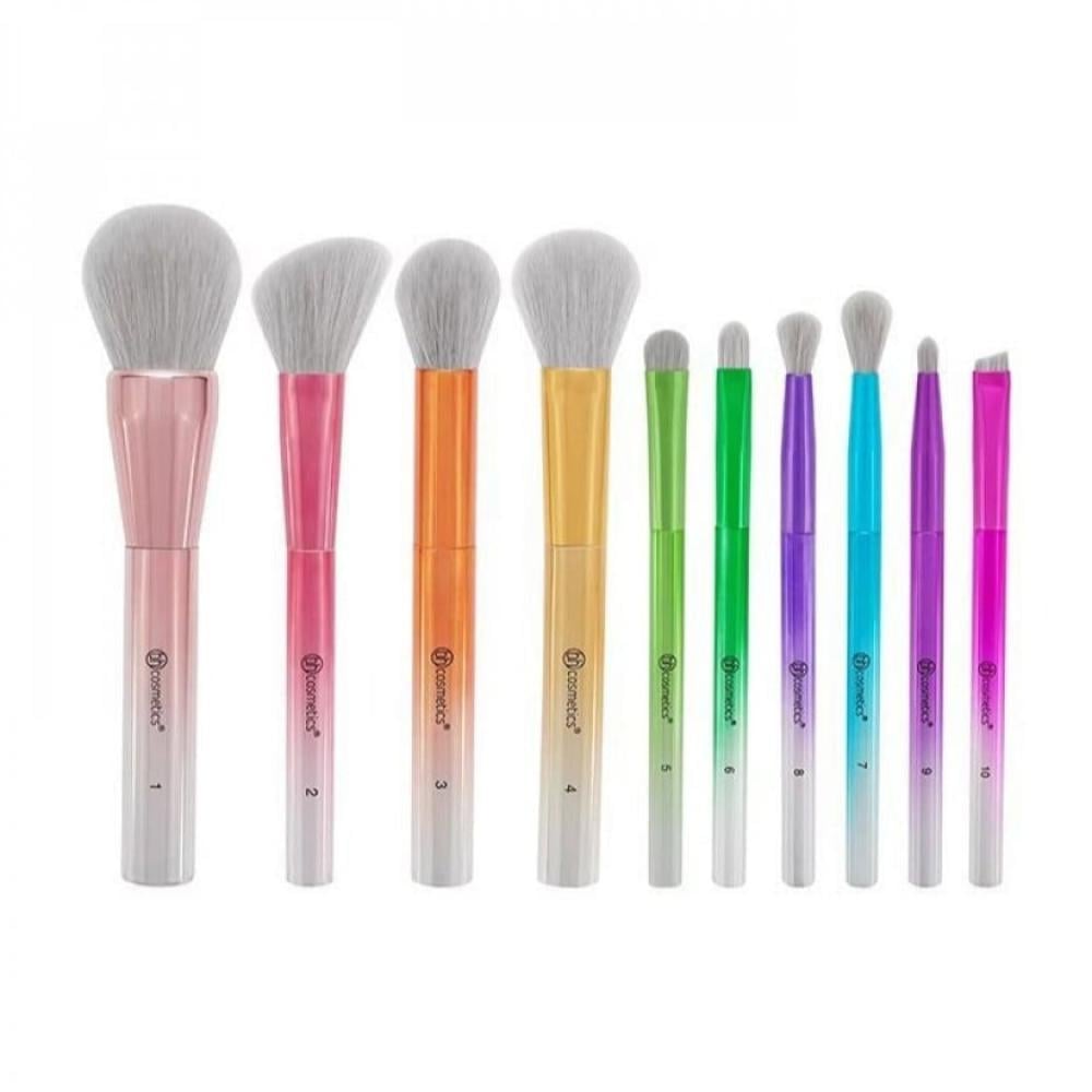 مجموعة فرش المكياج بتدرجات الوان مميزة، تحتوي على فرش متنوعة وناعمة للوجه والعيون مصممة بممسكة فرش معدنية ملونة وشعيرات صناعية تسهل عليك عملية دمج وتطبيق المكياج بسهولة