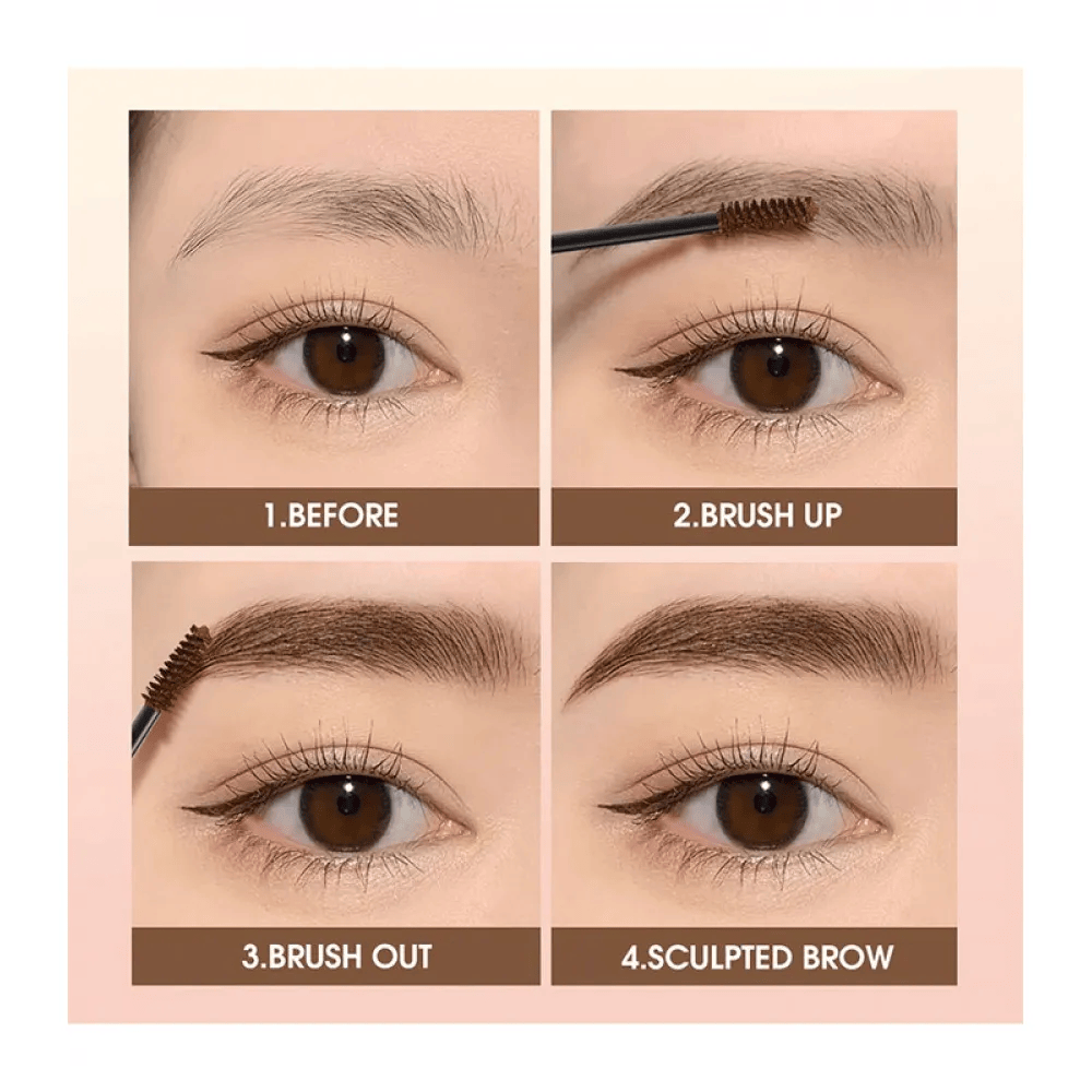 - استخدم الفرشاة المرفقة لتطبيق الماسكارا على الحواجب بلطف وباتجاه الشعر لتحديد وتمويج الحواجب بشكل مثالي.