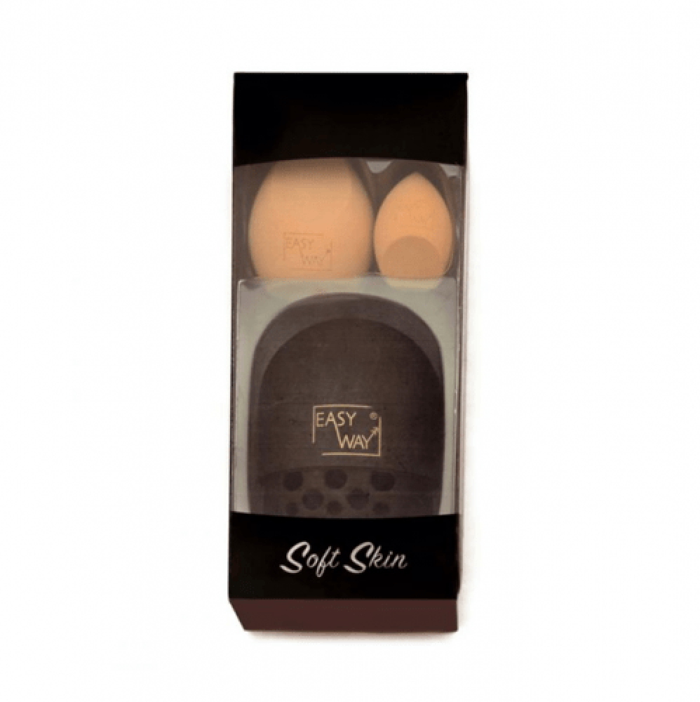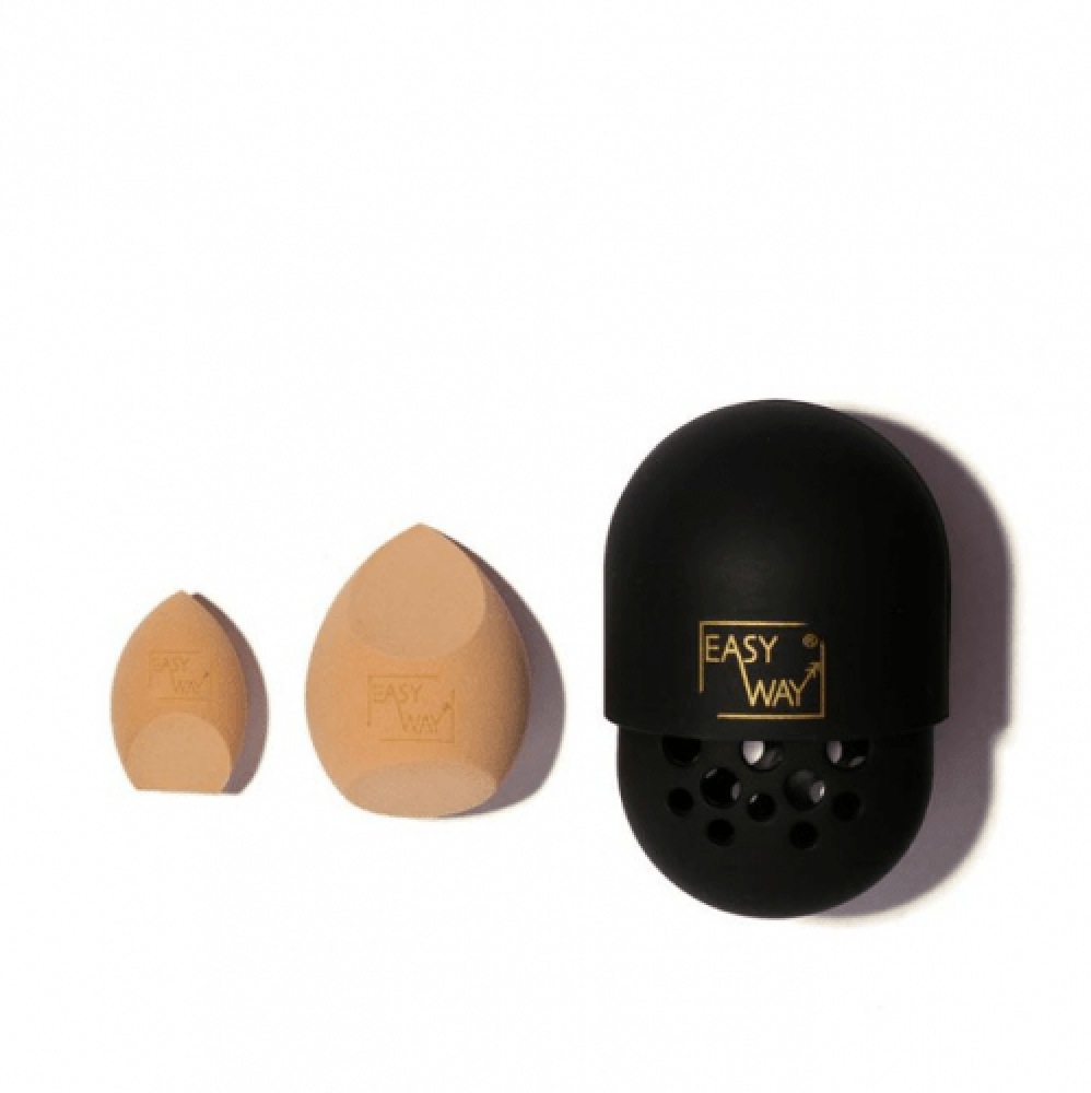 المجموعة تتكون من اسفنجة كبيرة تستخدم للوجه والجسم بالكامل و اسفنجة صغيرة تستخدم للكونسيلر تحت عينيك و حافظة بثقوب للاسفنجات للحماية من الاوساخ و الجراثيم و ليسمح لها تجف بعد الغسل