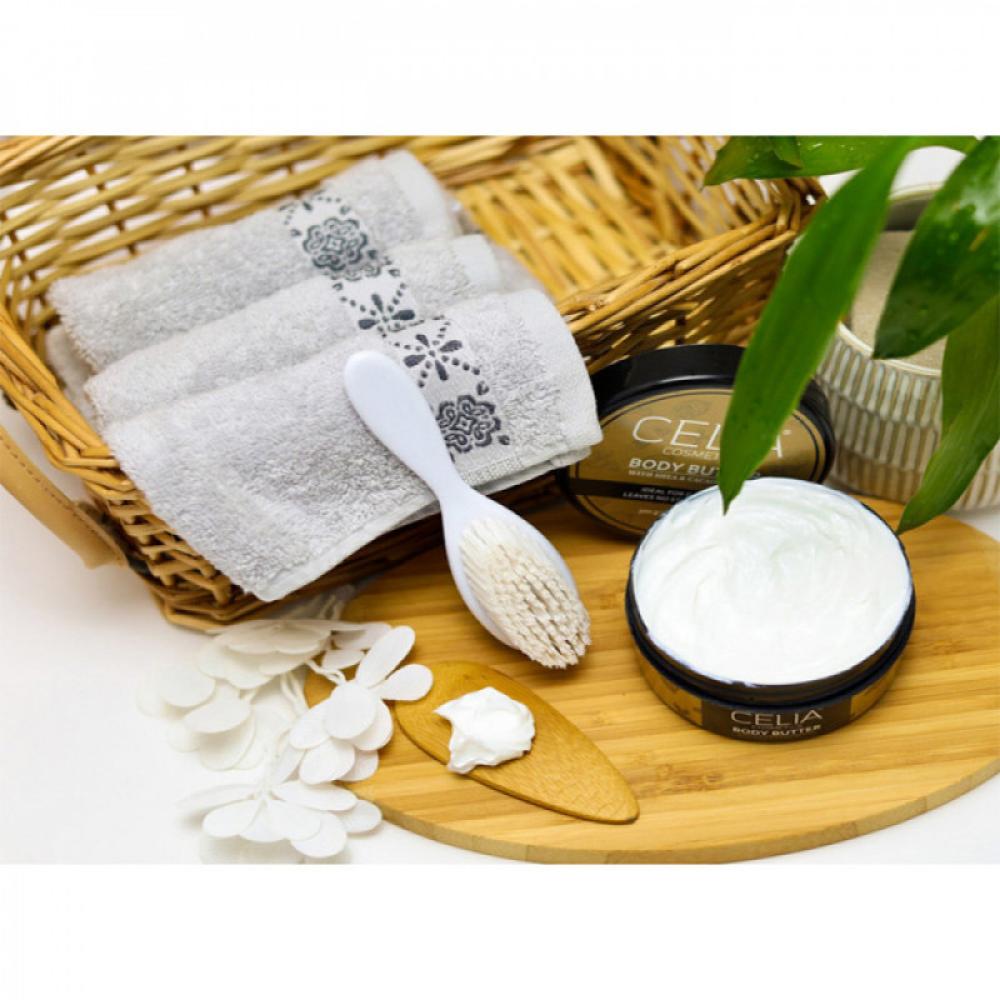 سيليا - زبدة الجسم بالشيا وزبدة الكاكاو هي زبدة فاخرة وغنية للجسم ترطب وتغذي البشرة بعمق. الزبدة مصنوعة من مزيج من زبدة الشيا والكاكاو ، وكلاهما معروف بخصائصه المرطبة والمغذية. انها غنية بالفيتامينات A و E ، وتساعد على تهدئة البشرة وحمايتها ، كما أنها غنية أيضا بمضادات الأكسدة وتساعد على تحسين مرونة الجلد. الزبدة خالية أيضا من البارابين ومناسبة لجميع أنواع البشرة. هذا البرطمان سعة 300 جرام مثالي للاستخدام اليومي ، مما يترك بشرتك ناعمة وسلسة ورطبة.