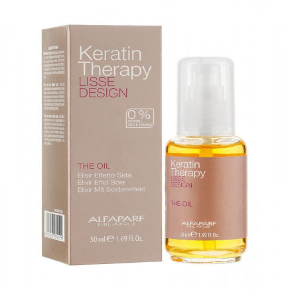 - ضع كمية صغيرة من زيت علاج تصميم العلاج بالكيراتين على راحة يدك.