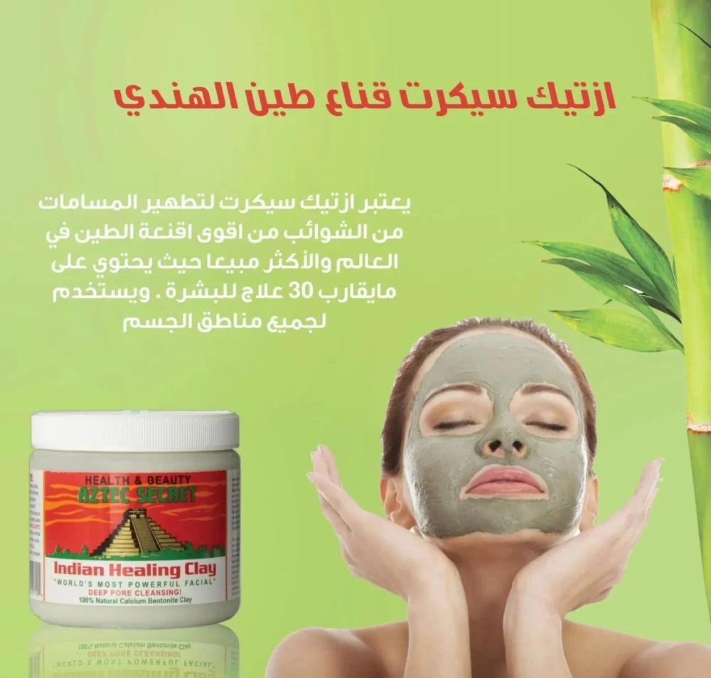 اكتشفي سر الجمال القديم مع ماسك الطين الهندي من ازتيك سيكريت. هذا الماسك الطيني، المتوفر على فاينس ضمن قسم العناية بالبشرة، يُعد قناع الوجه والجسم الأقوى في العالم. يتكون هذا الماسك بالكامل من طين البنتونيت الكالسيوم الطبيعي بنسبة 100%، والذي يُعرف بقدرته الفائقة على التنقية العميقة. يعمل الطين على سحب الشوائب والسموم من المسام عند مزجه بالماء أو خل التفاح الخام، مما ينتج عنه شعور قوي بالشد والنبض. هذا الماسك مثالي لتنظيف البشرة بعمق، تقليص المسام، تحسين الدورة الدموية، والمساعدة في علاج مشاكل البشرة مثل حب الشباب والرؤوس السوداء، ليترك بشرتكِ نظيفة، ناعمة، ومشرقة.
