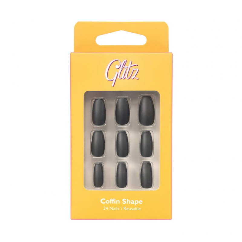 اظافر صناعية لصق ذاتي لون اسود مطفي - جليتز :