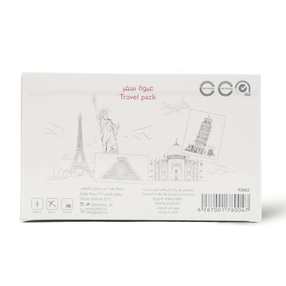 طهارة عبوة السفر، هي مجموعة مدمجة ومريحة مصممة للأفراد الذين يتنقلون دائما، يحتوي على مجموعة متنوعة من منتجات النظافة الحميمة المصممة خصيصا للسفر ، مما يضمن الحفاظ على نظافة جيدة أثناء وجودك بعيدا عن المنزل، تتضمن حزمة السفر الضروريات مثل المناديل المبللة للمناطق الحساسة والبخاخات المنعشة وغيرها من المنتجات للحفاظ على شعورك بالنظافة والانتعاش، المنتجات الموجودة في العبوة مصنوعة من مكونات لطيفة وآمنة مناسبة للاستخدام اليومي. الحجم الصغير لحزمة السفر يجعل من السهل حملها في محفظة أو حقيبة ظهر أو أمتعة ، مما يضمن حصولك على المنتجات اللازمة للنظافة أينما ذهبت، سواء كنت مسافرا للعمل أو الترفيه، فإن باقة السفر من طهارة هي عنصر أساسي لأولئك الذين يقدرون النظافة الحميمة الجيدة.