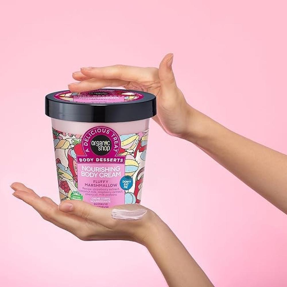 اختاري كريم الجسم المغذي مارشميلو ناعم من اورجانيك شوب لبشرة ناعمة، مغذية، ومترطبة طوال اليوم!