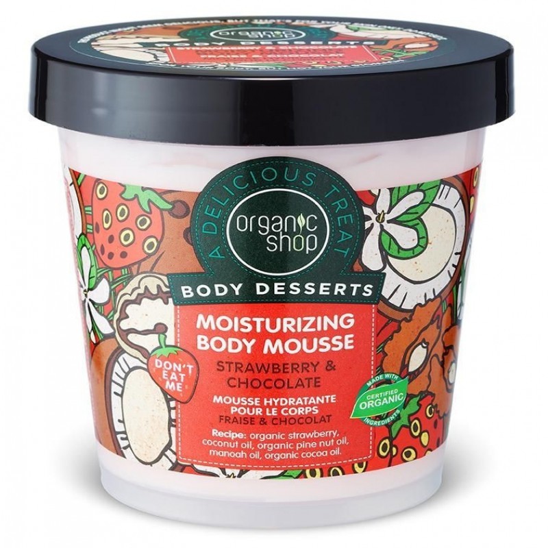 اورجانيك شوب كريم للجسم بالفراولة والشكولاتة يمنحك ترطيب عالي للجسم و يجعل بشرتك ناعمه برائحة جميله و تغذي البشرة مع تعزيزها ويمنحها المرونة و اللون الموحد .