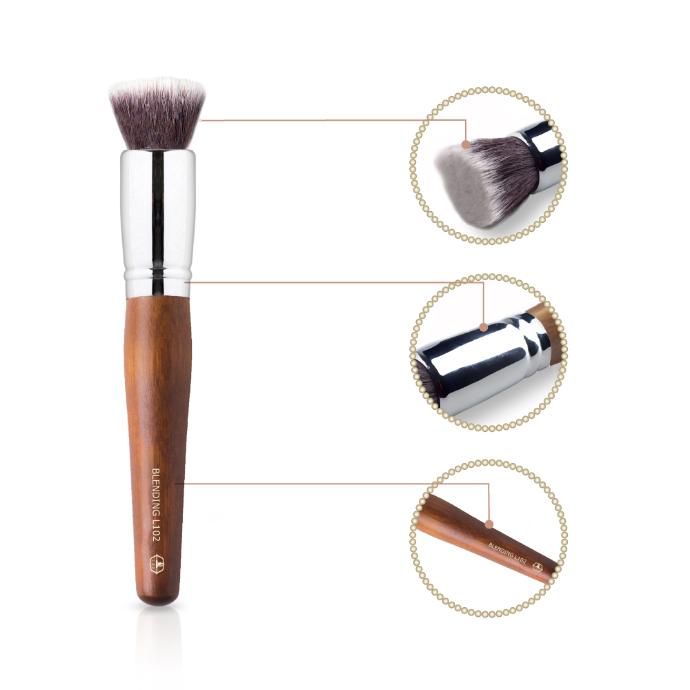 تحتوي هذه الفرشاة على شعر كثيف وناعم، تستخدم لدمج كريم الأساس بشكل متساو، رأس الفرشاة العلوي مسطح ليلتقط بسهولة ان نوع من الكريمات دون ان يمتص المنتج