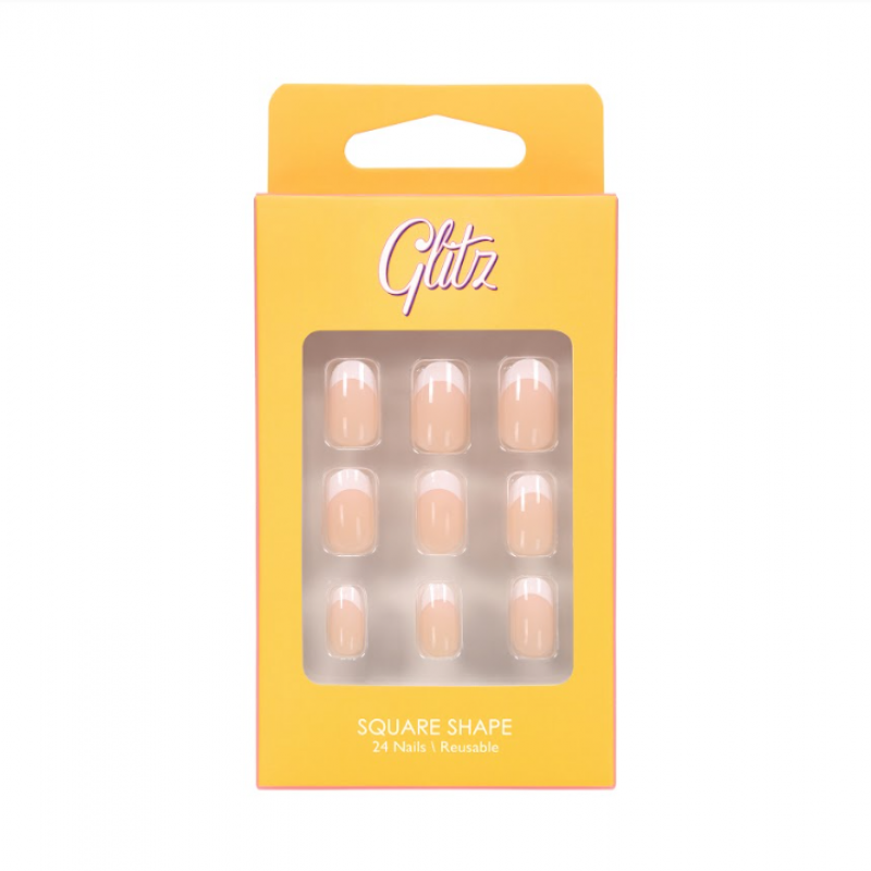 جليتز اظافر صناعية لصق ذاتي هي مجموعة أظافر صناعية عالية الجودة مصممة لأولئك الذين يرغبون في الحصول على مانيكير ذو مظهر احترافي في المنزل. تأتي هذه المجموعة مع 24 مسمارا أسود بيضاوي الشكل قابل لإعادة الاستخدام يسهل تطبيقه ويمكن إعادة استخدامه عدة مرات.