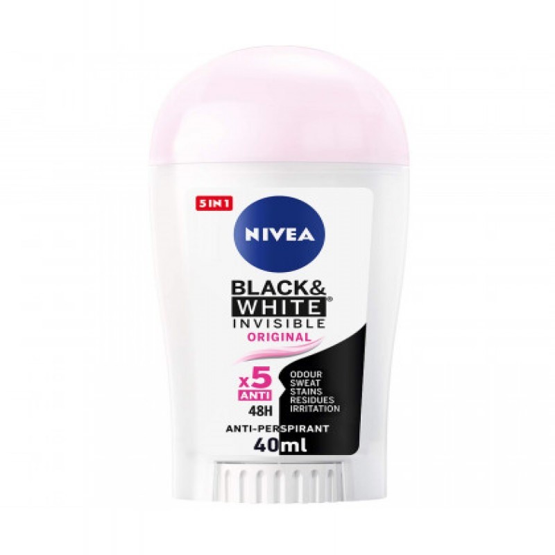 نيفيا رول مزيل عرق بلاك اند وايت انفيزيبل أوريجينال للنساء، موجود هنا من أجل ملابسك وبشرتك في وقت واحد بفضل تركيبته الأساسية والفريدة 5 في 1، ليحارب البقع البيضاء على قمصانك الأسود والأخرى الصفراء على قمصانك الأبيض، إضافة إلى محاربة الرائحة الكريهة والتعرق وتوفير حماية ورائحة زكية بمنطقة الإبطين.