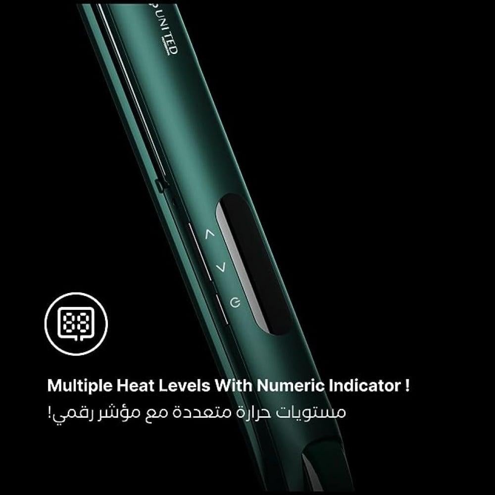 جهاز تمليس الشعر يونايتد بروفيشنال يستخدم لتنعيم الشعر بالأشعة تحت الحمراء يساعدك لعمل تسريحات ناعمة وأنيقة، يتميز بتصميم احترافي سهل الإستخدام ولوحات سيراميك عالية الجودة تساعد في توزيع الحرارة بالتساوي، يوفر درجات حرارة قابلة للضبط بما يتناسب مع طبيعة شعرك لإعطائك نتائج مثالية دون الحاق الضرر بالشعر تصل إلى 230 درجة، مع إيقاف تشغيل الحرارة تلقائياً لمدة 30 ثانية، ويتميز بسرعة الإحماء حيث يسخن خلال 30 ثانية، ويحتوي على ليد خاص لدرجات الحرارة، وعلبة مناسبة لتخزين الجهاز و الحفاظ علية، يأتي بحجم مناسب يمكنك حمله معك بسهولة في التنقل.