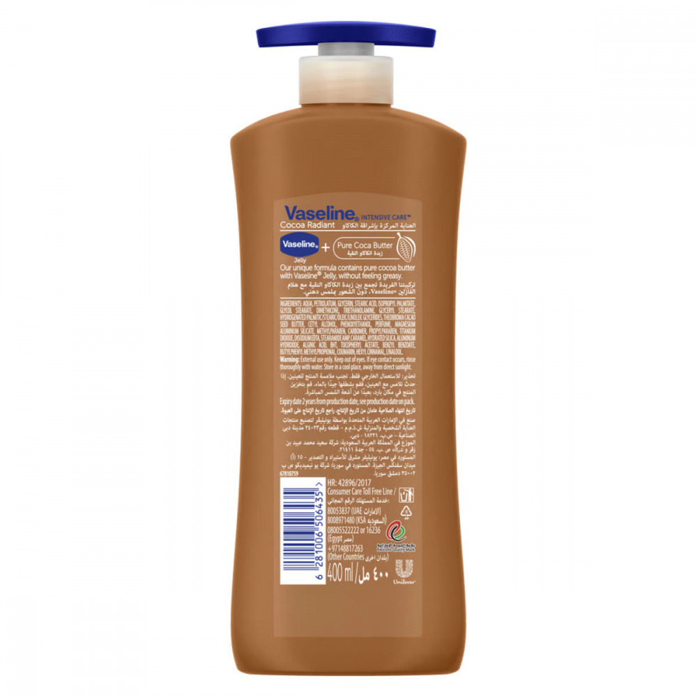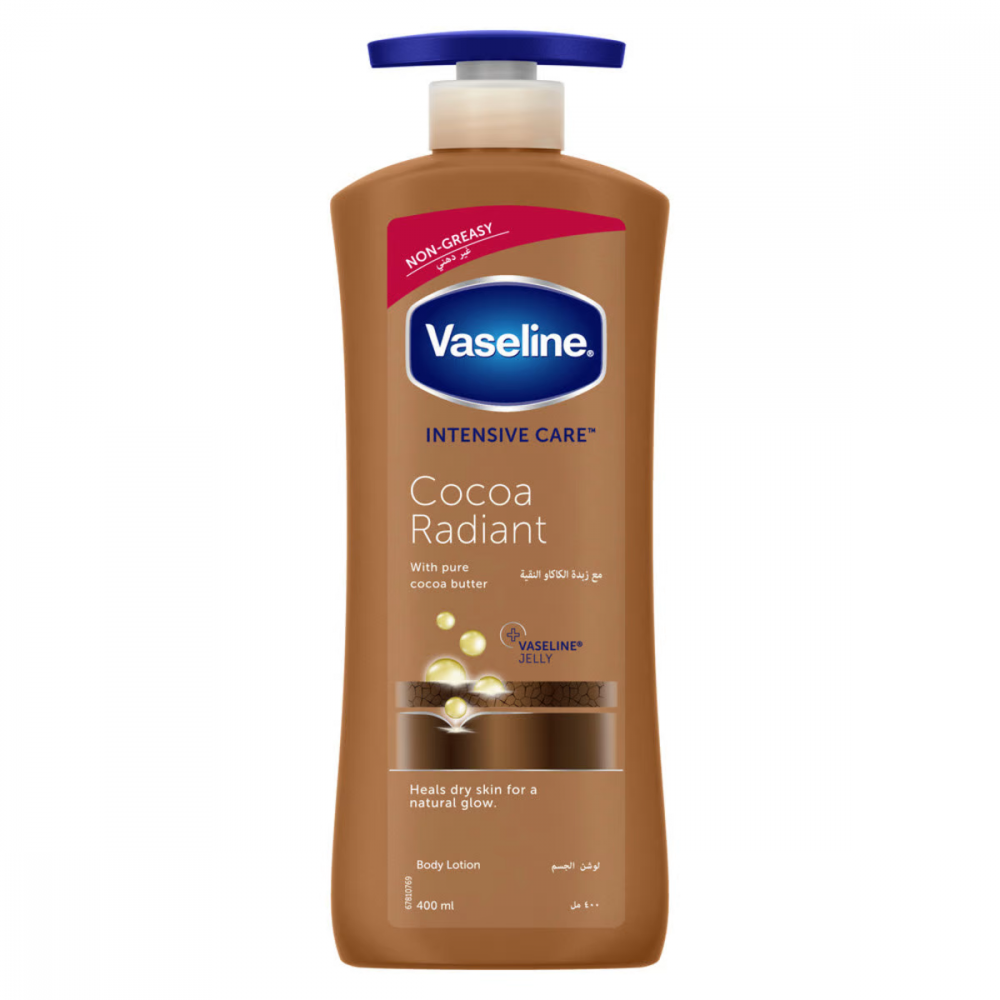 فازلين لوشن مع زبدة الكاكاو النقية هو لوشن للجسم صمم لمنحك النضارة الطبيعية و قد تم اختباره طبيا ليعالج بشرتك بتركيبته الغير الدهنية و سريعة الامتصاص